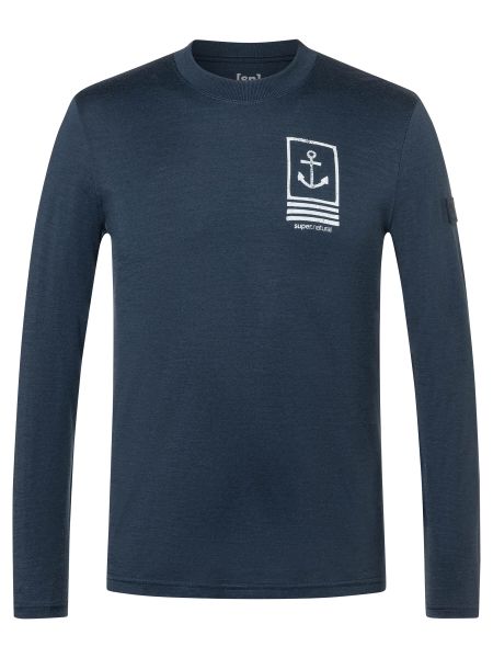 Nachhaltiges Herren-Longsleeve mit Merinowolle, UV-Schutz und biologisch abbaubaren Materialien.