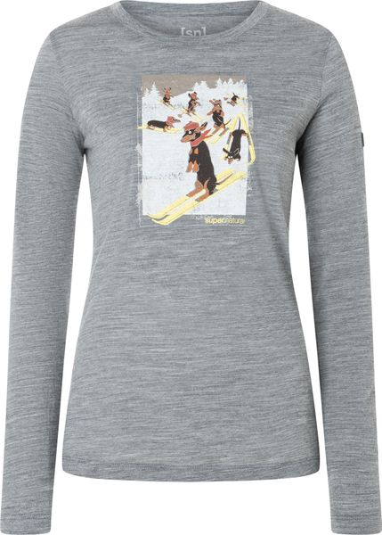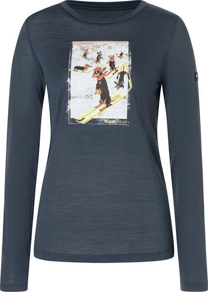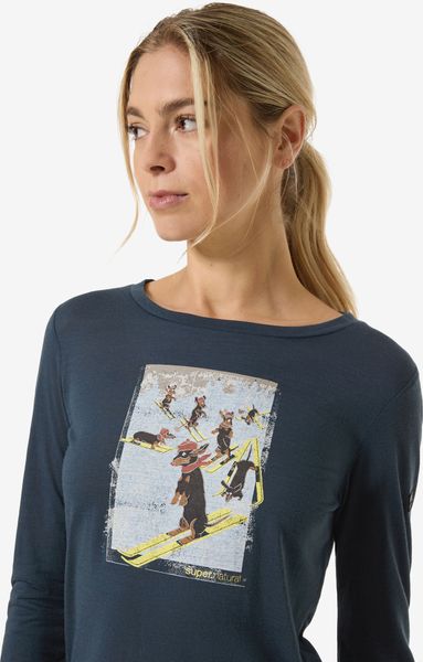 Langarmshirt mit Dackelmotiv, atmungsaktiv und schnelltrocknend, ideal für Skitouren und winterliche Aktivitäten.