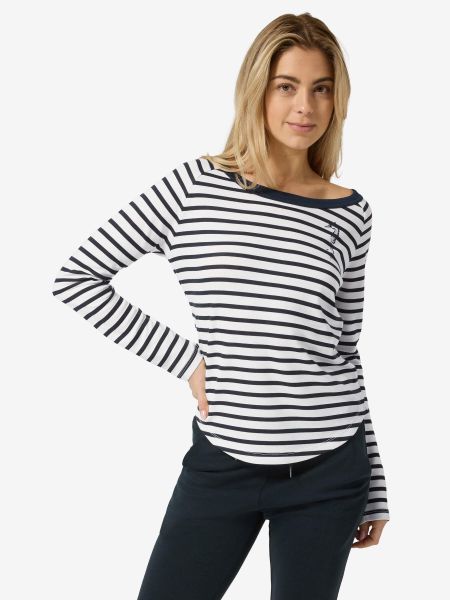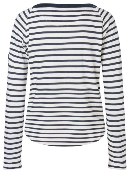 Nachhaltiges Damen-Shirt mit Streifen und Seepferdchen-Stick, aus Bio-Baumwolle und biologisch abbaubarer PrimaLoft® Faser.