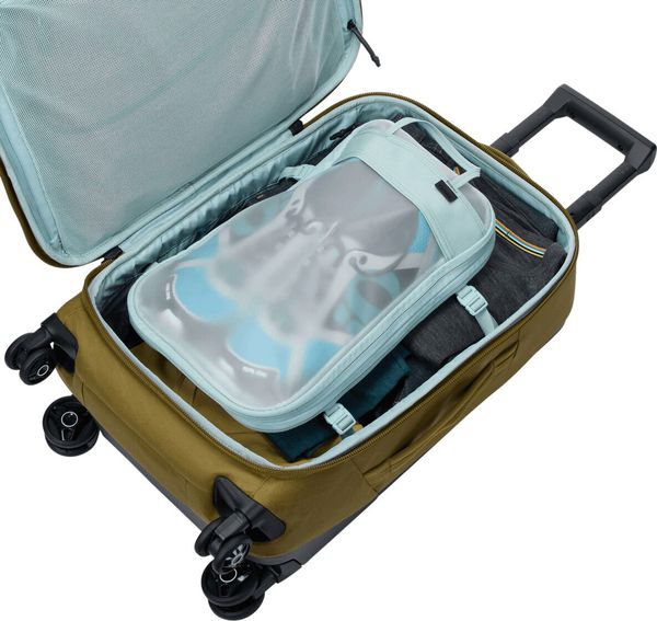 Der Aion Carry on Spinner von Thule ist der ideale Begleiter für alle, die sowohl im Berufsleben als auch in der Freizeit viel unterwegs sind. Dieser Handgepäckkoffer überzeugt durch seine durchdachte Funktionalität und nachhaltige Materialien. Ein besonderes Highlight ist der herausnehmbare Kompressions-Packwürfel mit TPU-Futter, der nicht nur den Stauraum optimal nutzt, sondern auch als praktische Tagestasche dient. Er schützt das restliche Gepäck vor Gerüchen, Feuchtigkeit und Schmutz und ist somit perfekt für die Organisation Ihrer Reiseutensilien.