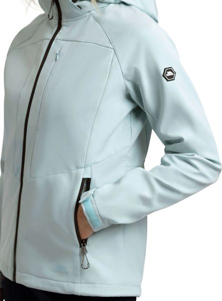 Leichte, wetterfeste Softshell-Jacke mit verstellbarer Kapuze, ideal für Outdoor-Abenteuer.