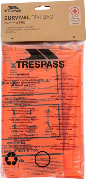 - Großzügige Größe: Mit den Maßen 750mm x 1900mm bietet die Trespass Vis Survival Bag ausreichend Platz und Schutz.