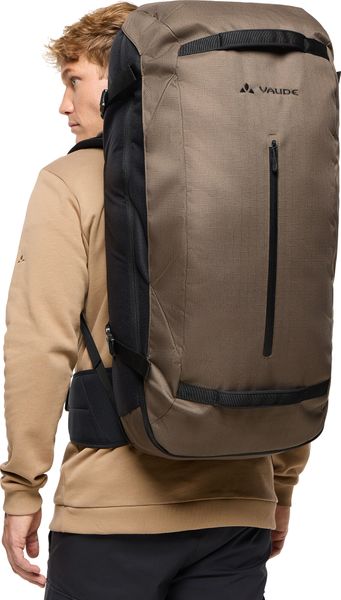 Zwei gepolsterte Griffe an der Front erleichtern das Heben und Verstauen des Rucksacks. Die integrierte Tragesystemabdeckung schützt das Tragesystem während des Transports und ist ideal für Flugreisen oder den Einsatz öffentlicher Verkehrsmittel. Das VAUDE Green Shape-Label garantiert Ihnen ein umweltfreundliches und funktionelles Produkt aus nachhaltigen Materialien.