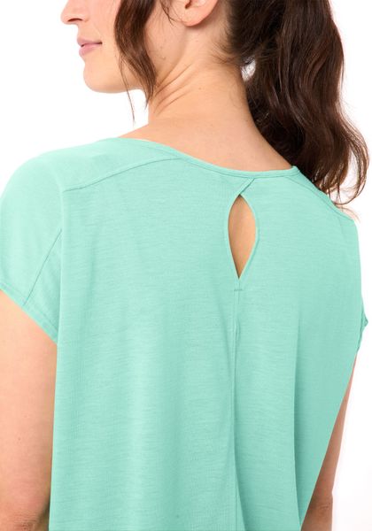 Der modische Loose Fit Schnitt mit überschnittenen Schultern schützt vor Sonneneinstrahlung und sorgt gleichzeitig für einen lässigen Look. Ein feines Streifenmuster und der Schlitz in der hinteren Mitte setzen stilvolle Akzente. Der tiefere Halsausschnitt und die dekorative Rückenaussparung verleihen dem T-Shirt zusätzliche Raffinesse. Dank der Verwendung von recyceltem PET und Lyocell ist das T-Shirt nicht nur umweltfreundlich, sondern auch ressourcenschonend hergestellt und zu 100 % biologisch abbaubar.
